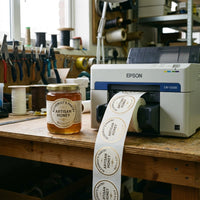 Engineered for Reliability: Industrial-grade custom roll labels designed for the Epson CW-6500 and high-speed applicators. Available in Glossy Vinyl (Vibrant) and Matte Poly (Non-Glare).